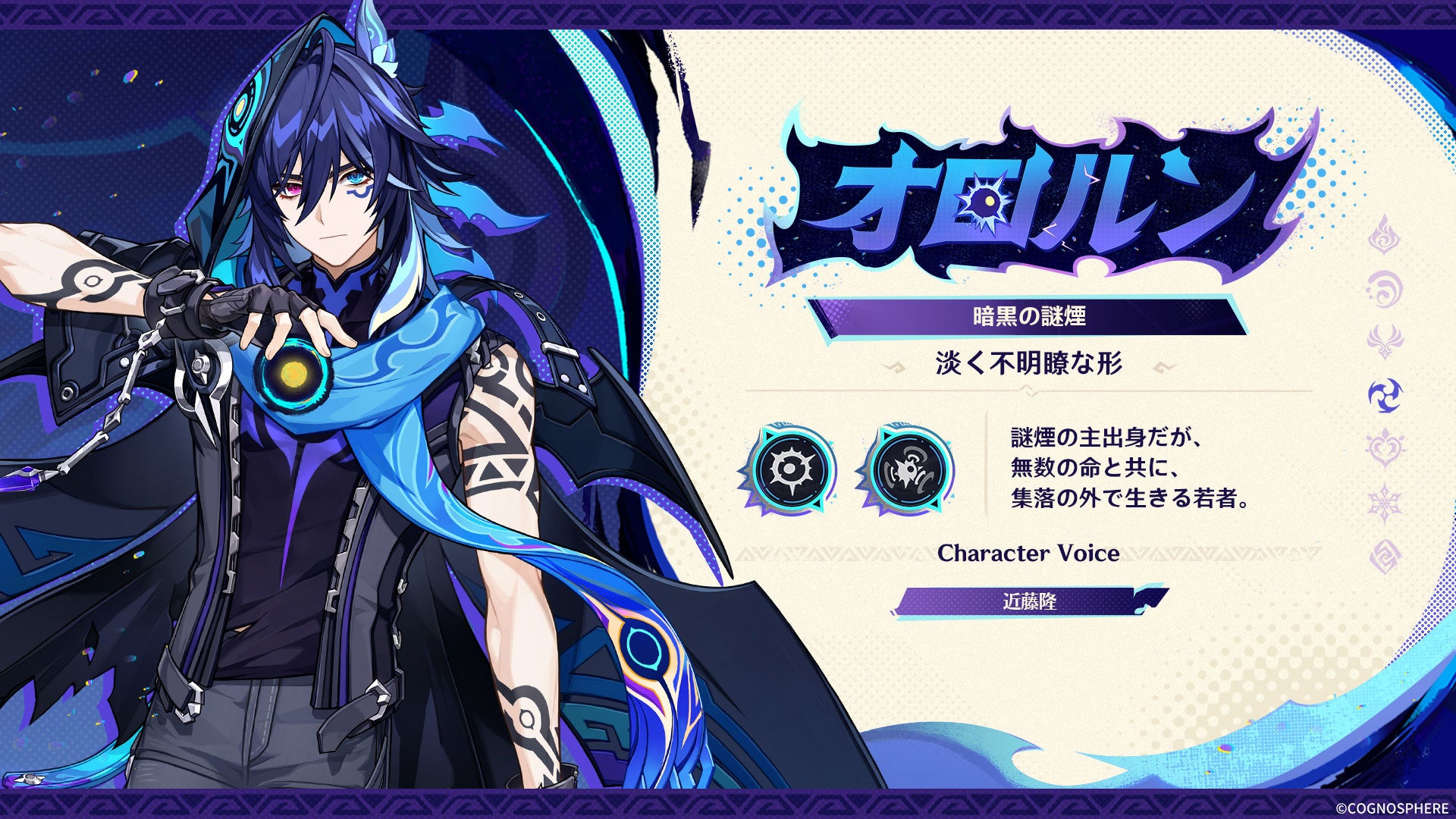 チーム内のキャラクターが「夜魂バースト」を起こした時、あるいはオロルンの元素スキル発動後、チーム内のキャラクターの水元素または雷元素ダメージを与えた時、オロルンは一定の夜魂値を獲得する。敵が感電ダメージ、または夜魂性質のダメージを受けた場合、オロルンは夜魄の加護状態に入り、雷元素ダメージを与える。
