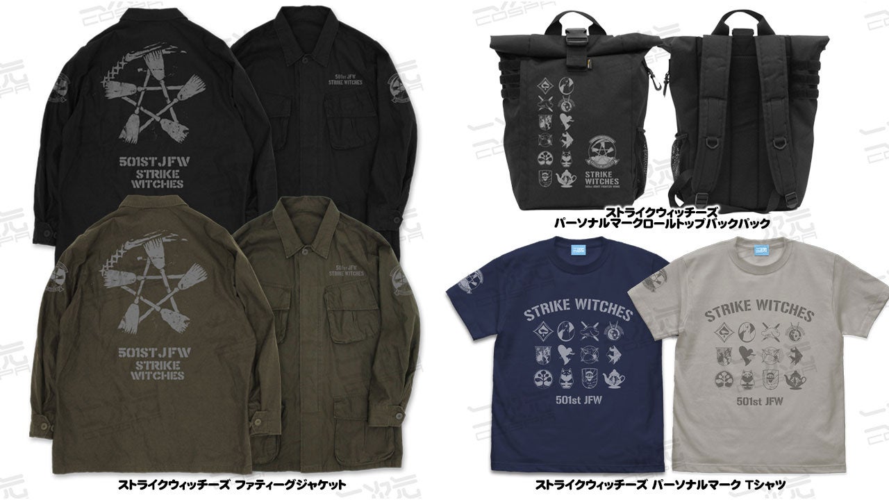 『第501統合戦闘航空団 ストライクウィッチーズ ROAD to BERLIN』より、ウィッチたちのパーソナルマークをデザインした「Tシャツ」、そして"ストライクウィッチーズ"をイメージした「ファティーグジャケット」、「ロールトップバックパック」がラインナップいたしました。