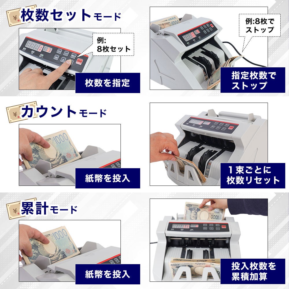 本製品は高速でお札の枚数を自動で計測することができる紙幣カウンターです。