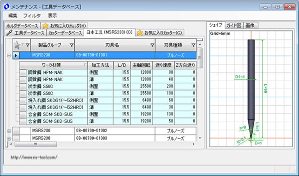 特長は、荒加工から仕上げ加工まで、FF加工という最適なパス理論に則って実現できることです。具体的には、工具磨耗や工具折損の少ない安定した高速加工が可能です。さらに、工作機械メーカだから可能な、豊富な加工経験に基づく実戦的な切削条件が登録されています。