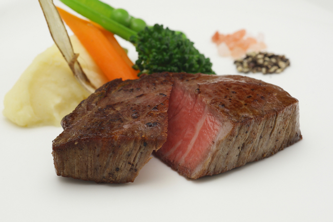・特撰牛フィレ肉のステーキ マッシュポテトを添え ヒマラヤの岩塩と黒胡椒 赤ワインとエシャロットのソース