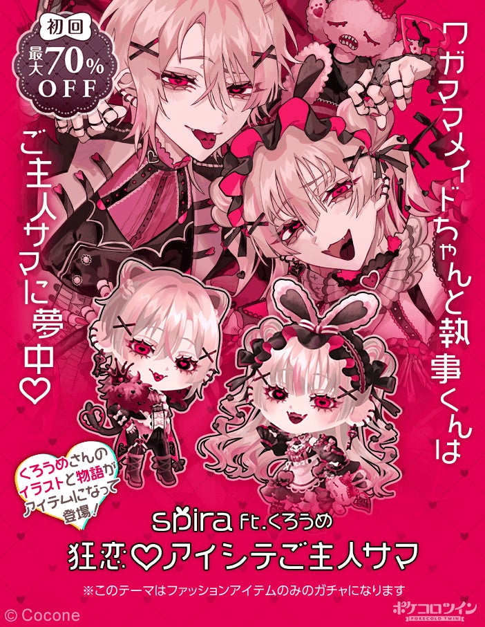 ココネ株式会社(以下「ココネ」)は、アバターの着せかえやお客様同士のコミュニケーションを楽しむアプリ『ポケコロツイン』において、ボカロ系MVなどでも人気のイラストレーター くろうめ さんが書き下ろしたイラストをアイテム化し、それらを記念したイベントを開催します。