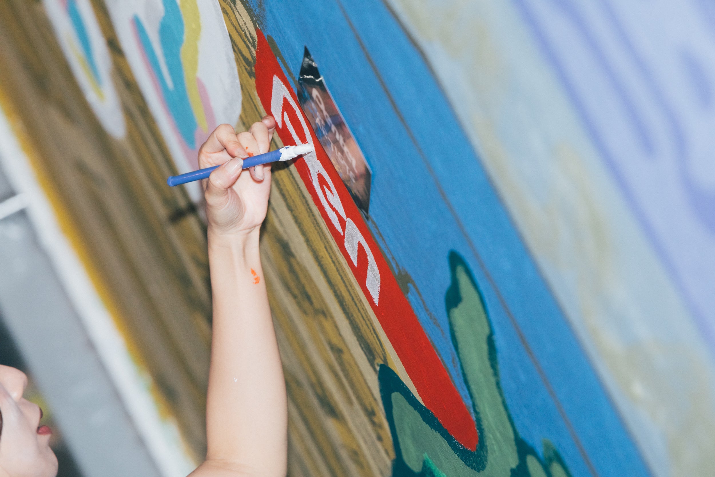 コメント:コメント:「Colors of the City」というテーマを見たとき、「人の人生を描こう」と思いました。街に人が行き交うことで、世界が彩られていくイメージです。普段アーティストとして活動する際は、コンセプトとして自分の考えや主張が重要視されますが、今回は大勢の方が携わるプロジェクトということもあり、「ABEYUKA.の良さはそのままに、沢山の人に愛される作品」を作ることを目標としました。大きな壁画制作も、ぺんてるの社員さんたちが入れ代わり立ち代わり制作をお手伝いしてくださることも、私にとって初の試みでしたので、事前に綿密に作戦を練り制作に取り掛かりました。おかげさまで計画通り丸5日間で完成させることができ、とても嬉しく思います。