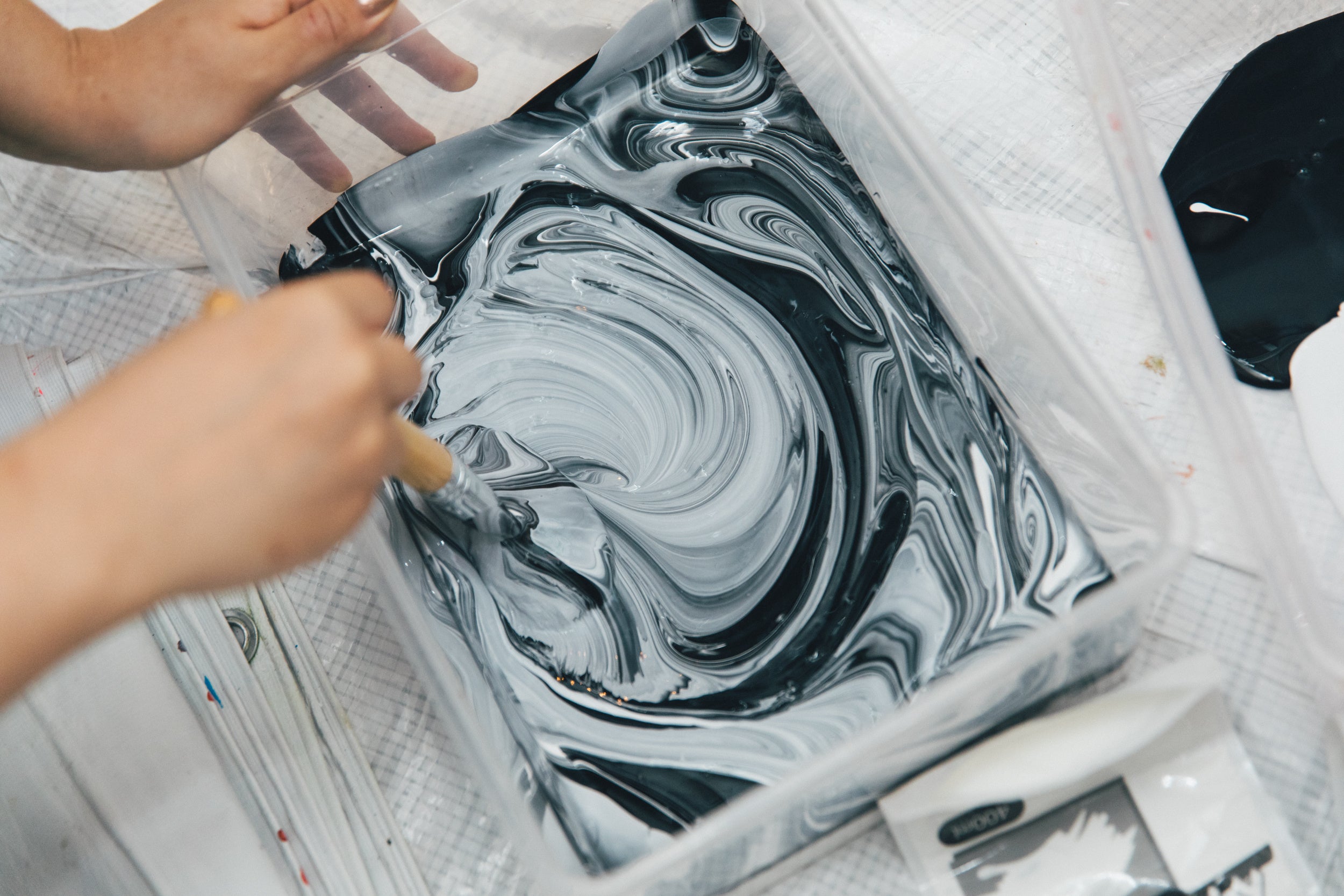 木、ダンボール、布、発泡スチロール、プラスチック、石、缶など油性面以外の素材に着彩できる、アクリル樹脂系不透明えのぐです。マット調の仕上がりで乾燥後は水に流れない耐水性があります。また、蛍光色(6色)は、ブラックライトで独特な効果を出せます。