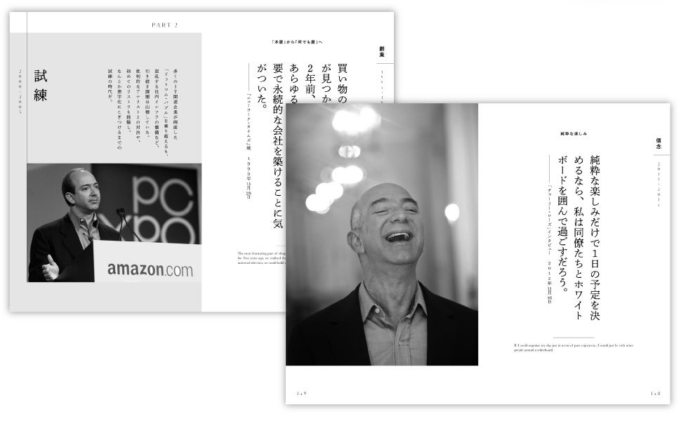 アマゾン創業者。インターネットの黎明期に、華やかなキャリアを捨てて本の通信販売サイトを設立。その後取り扱い商品の拡充を続け、キンドルやアマゾンエコーなど革新的な商品を次々と開発。その労働環境などに批判を受けながらも「顧客第一主義」を掲げ、今も進化を続けている。