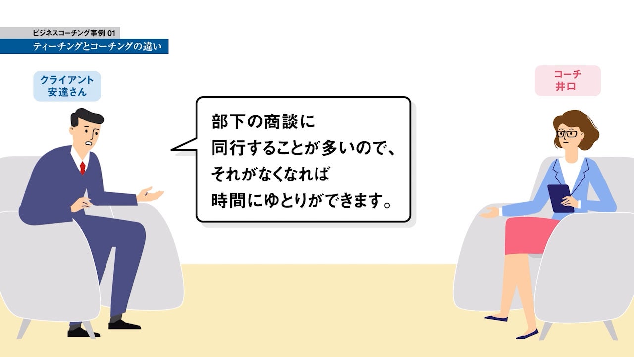 独学などでは知識はインプットできるものの、実践力は身に付きにくいといったデメリットがあります。本講座では、コーチングの現場をイメージしやすいように、コーチング事例をアニメーションで再現し、クライアントに向き合うコーチの対応を見ることで、自分ならどのように活用していくかを考えて実行に移せるようになります。映像講義を視聴することで、「傾聴スキル」「質問スキル」がしっかりと身に付きます。