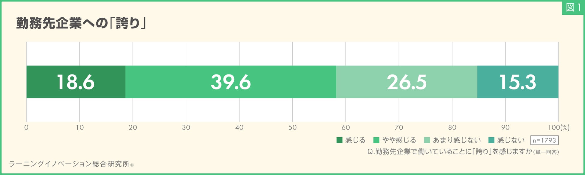 58.2%の若手社員が、勤務先企業に「誇り」を実感。社会人歴が長くなるにつれて減少傾向(図1・図2)