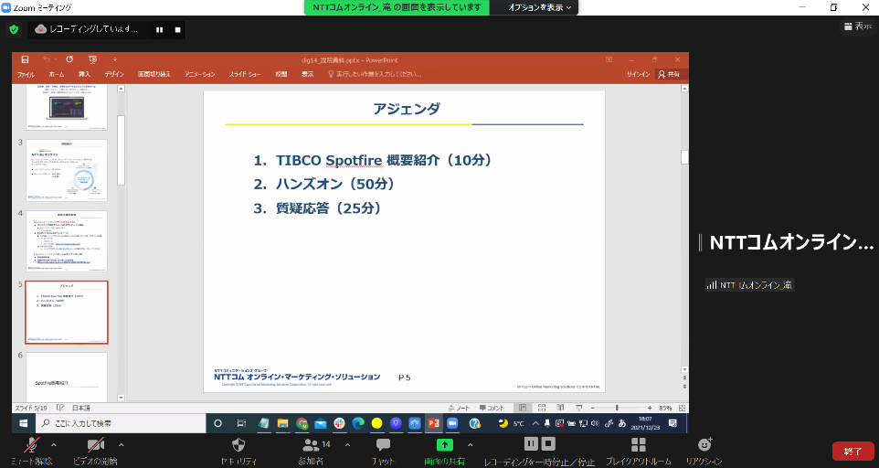 本コンテストにおいて、学生向けのデータ分析を行うためのe-learnignを実施するとともに、NTTコム オンラインのデータサイエンティストより、本コンテストに参加する皆さんにTIBCO Spotfire®を利用するためのオンライン講習会を行いました。