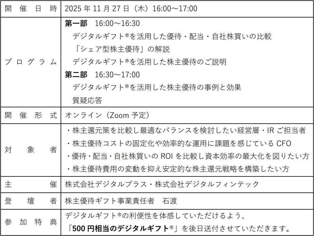 【11月27日開催無料セミナー】優待還元額をあらかじめ固定する業界初のシェア型株主優待について解説