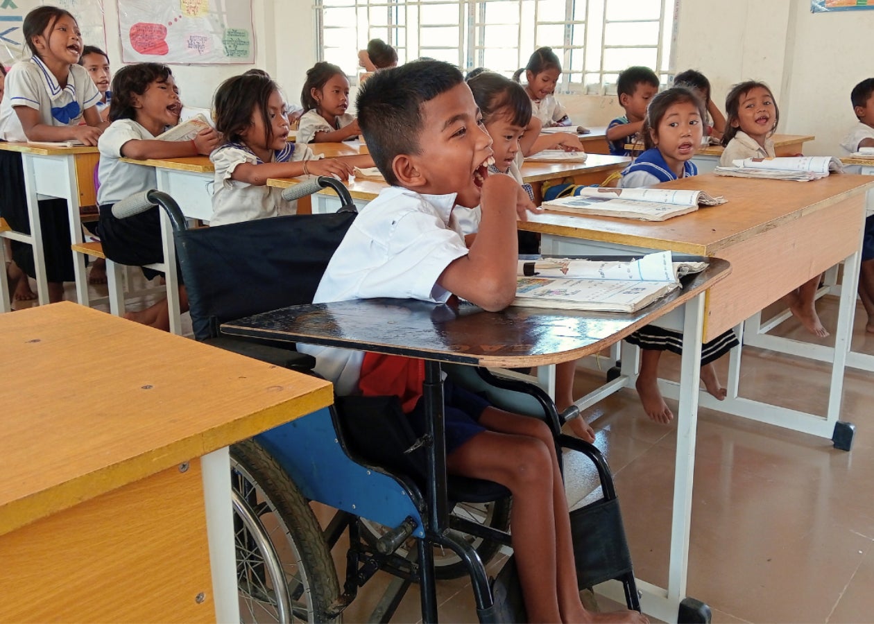 カンボジアでは、先天性の障がいのある人やポリオで脚に障がいを負った人など、車いすを必要としている人が大勢います。しかし、そうした人々の多くは経済的な理由などで体に合った車いすを持っていません。このプロジェクトでは、車いす工房の運営を支え、 車いすを70人に提供します。一人で移動できることが、通学や就労などの社会参加につながります。