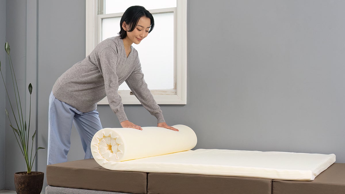 『D-Sleep Eco』は、手持ちのマットレスの上に敷いて使用する「D-sleep」シリーズの、植物性素材を採用した新モデルです。普段使用している寝具に1枚重ねて使用することで、体圧分散性の高い波型構造が身体をバランスよく支え、立ち姿勢に近い寝姿勢をキープし、心地よい眠りをサポート。収納に便利な専用バッグ付きで、軽くて持ち運びも簡単なため、普段の使用はもちろん、急な来客や車中泊の際にも便利に使用できるアイテムです。