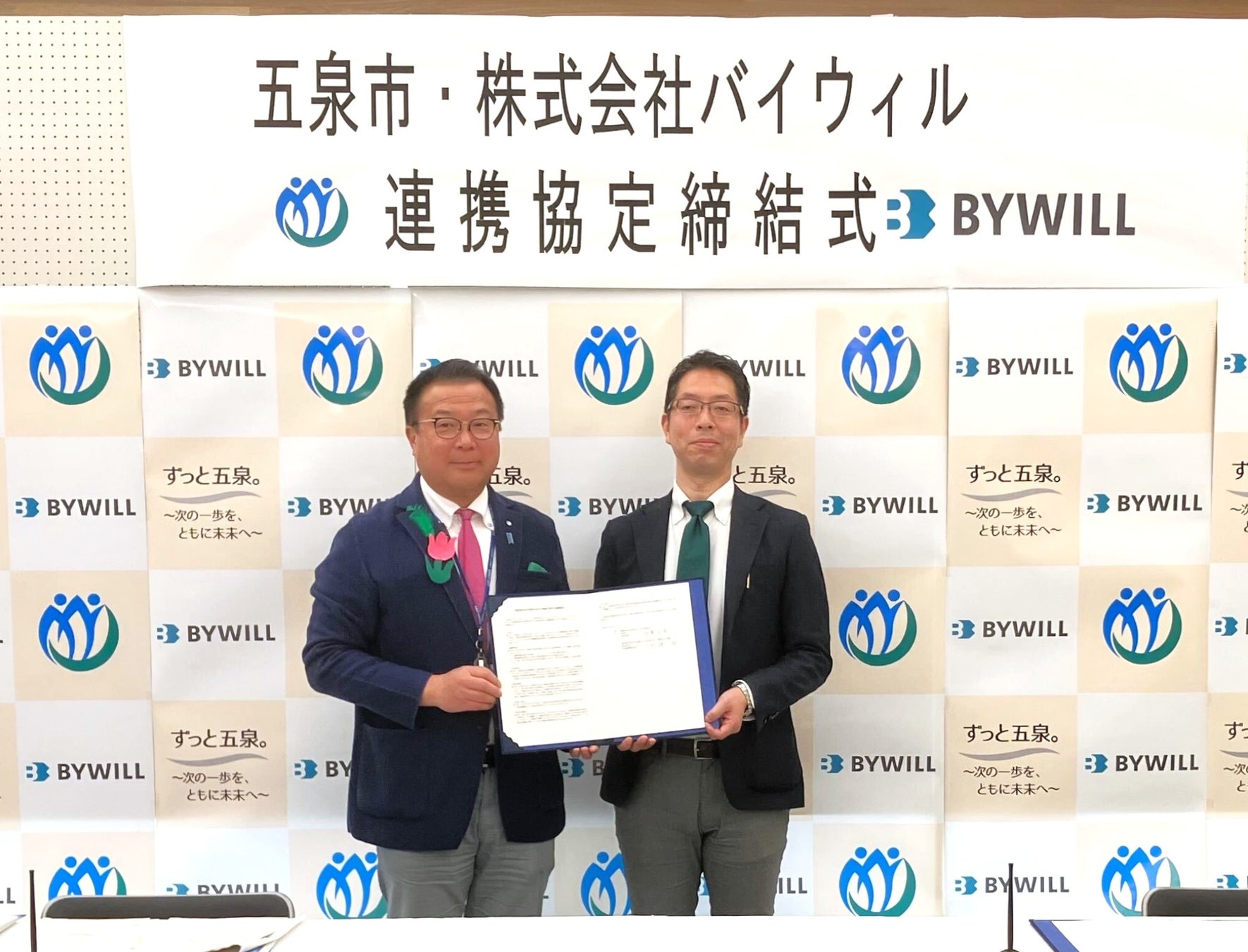 日本全国47都道府県のカーボンニュートラル実現を目指す株式会社バイウィル(本社:東京都中央区、代表取締役社長:下村 雄一郎、以下「バイウィル」)は、新潟県五泉市(市長:田邊 正幸、以下「五泉市」)と、「脱炭素社会の実現に向けた取組に関する連携協定書」を締結しました。