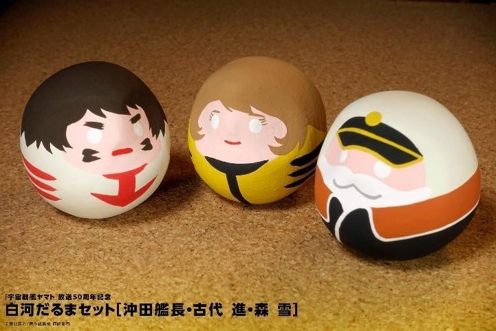 沖田館長、古代進、森雪の3人が、福島の特産の白河だるまに!ひとつひとつ職人の手作りによるアイテムです。サイズ:高さ約50mm 3つセットで6,600円