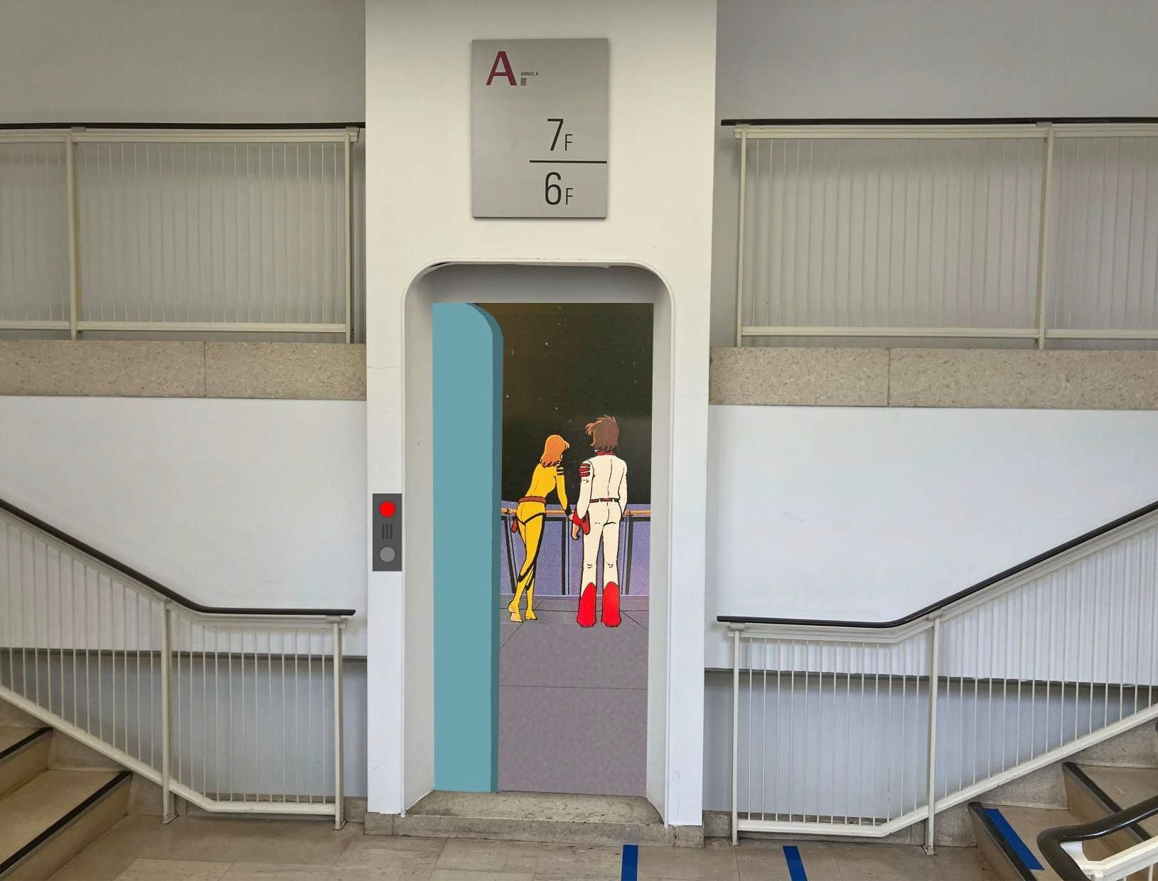 フロア間にあるちょっとしたスペースが、まるでヤマト艦内の扉に変身!
