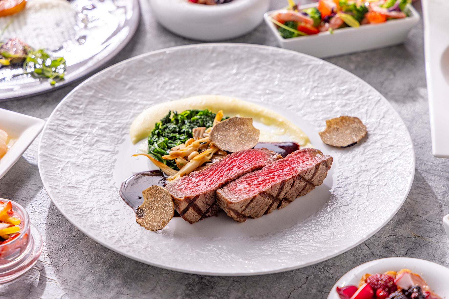 ・和牛フィレ肉のグリル ワイルドマッシュルームのエチュベ ブランデーソース(追加料金3,300円)