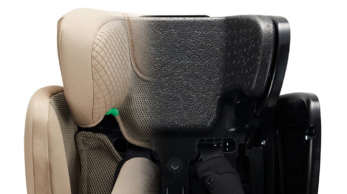 ヘルメットなどで使用される衝撃吸収力の高い発泡材をヘッドクッションに採用し、側面衝突での頭部への衝撃を軽減。前後だけでなく側面の衝撃からもお子様をしっかりガードします。