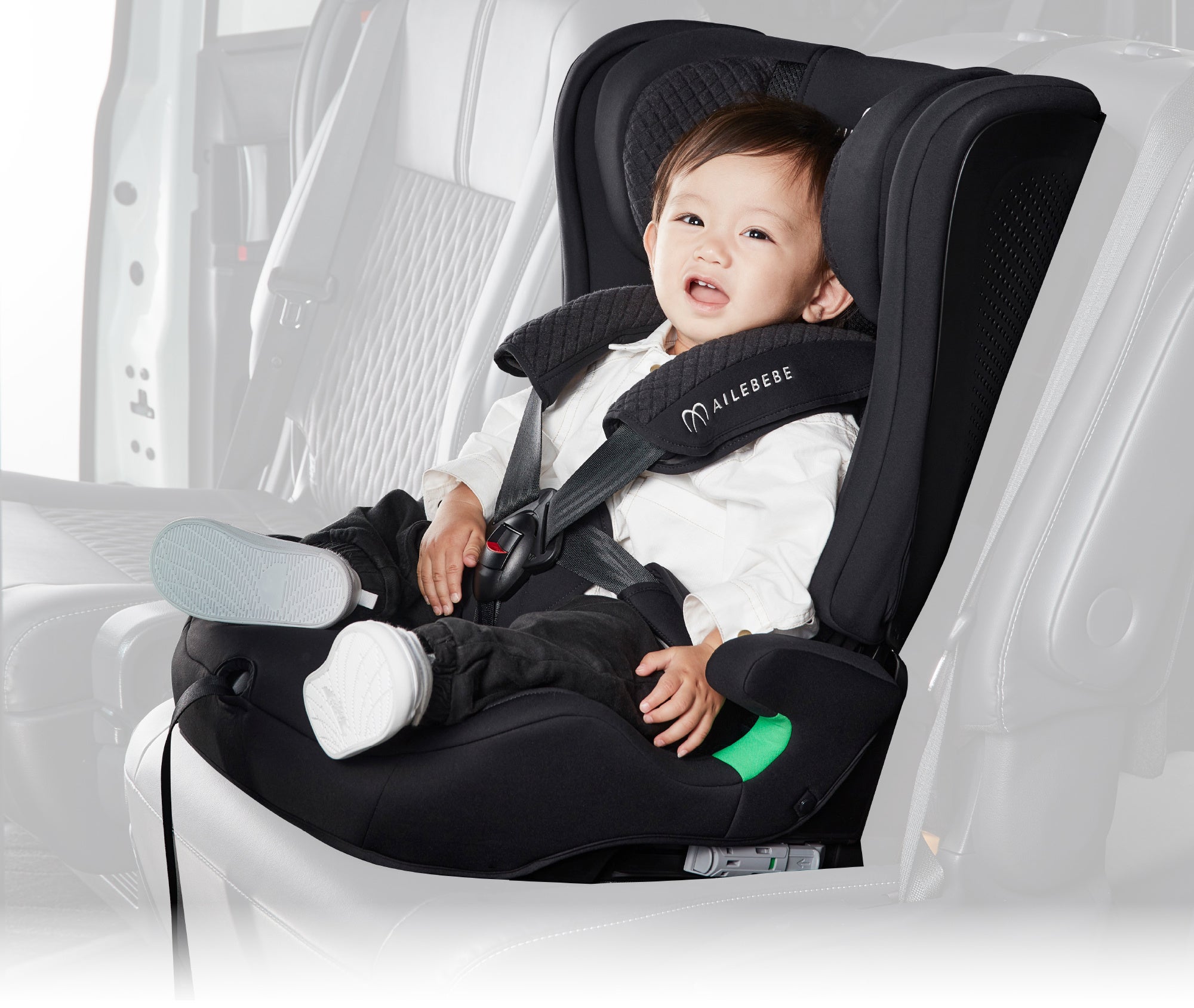 パパットシリーズは「"ぱぱっと"取り付け、"ぱぱっと"乗せ降ろしができる」をコンセプトとしたチャイルド&ジュニアシートです。肩ベルトが跳ね上がった状態をキープする「ジャンピングハーネス」※が、お子様の腕をベルトに通しやすく乗せ降ろしがしやすいと好評を得ています。(パパットシリーズのユーザーレビュー:https://ailebebe.jp/user_review.html#junior1 )