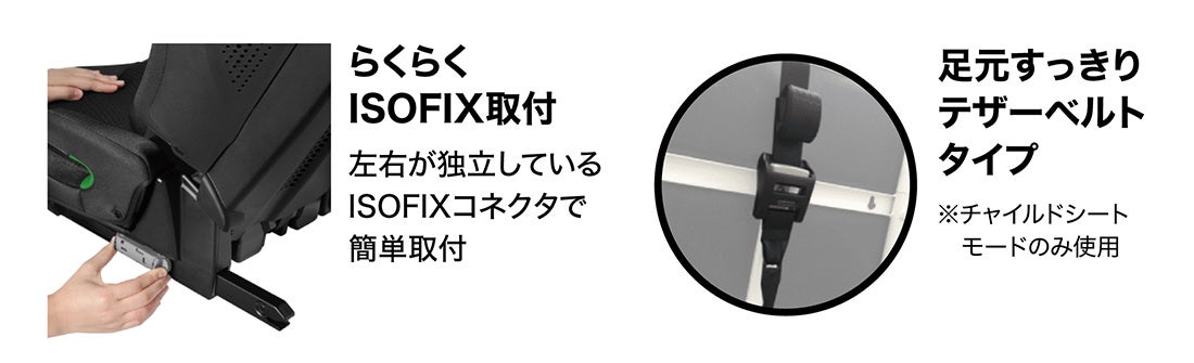 ・左右独立ISOFIXコネクタで簡単・確実に取り付けできる