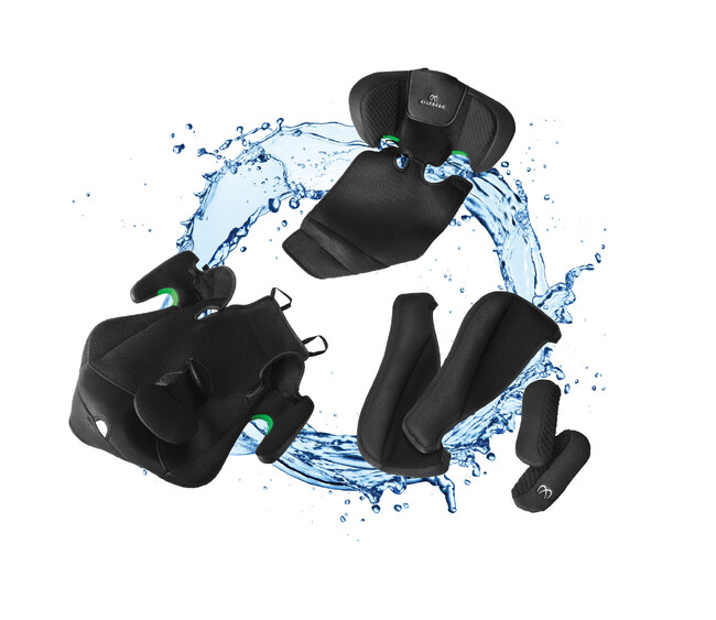 従来モデルでは肩ベルトカバーの上側のみ肩パッドを取り付けていましたが、本製品では肩ベルトが汚れないようぐるっと包み込む形状に。ふわふわのクッションがお子様の頬や首にフィットするので快適です。また、簡単に取り外して洗濯機で洗えるため衛生的に使用できます。