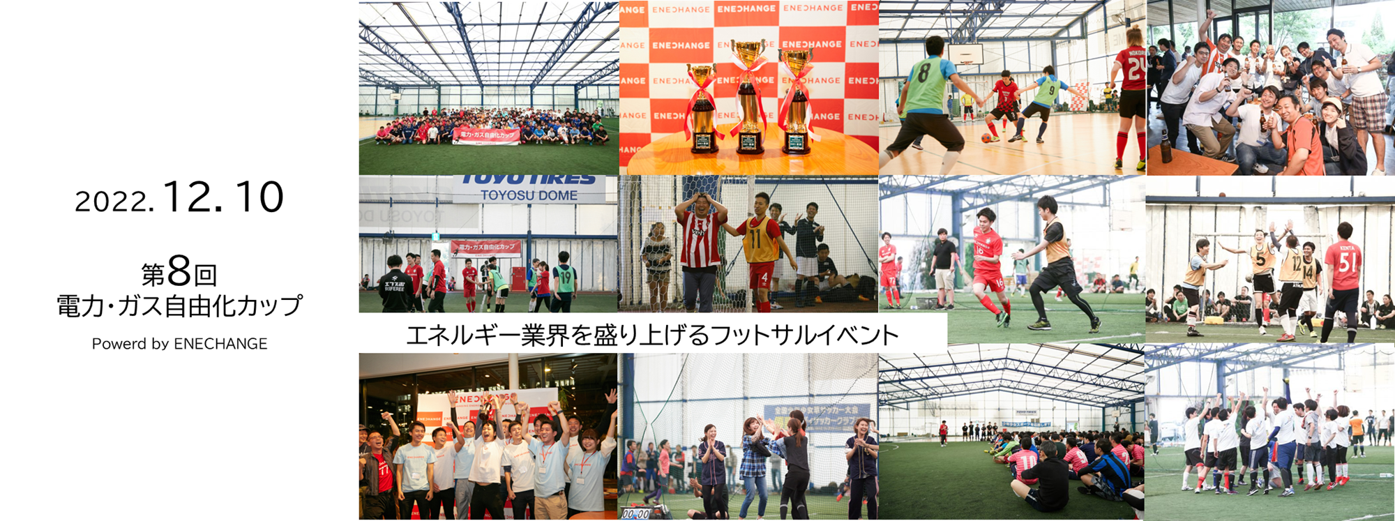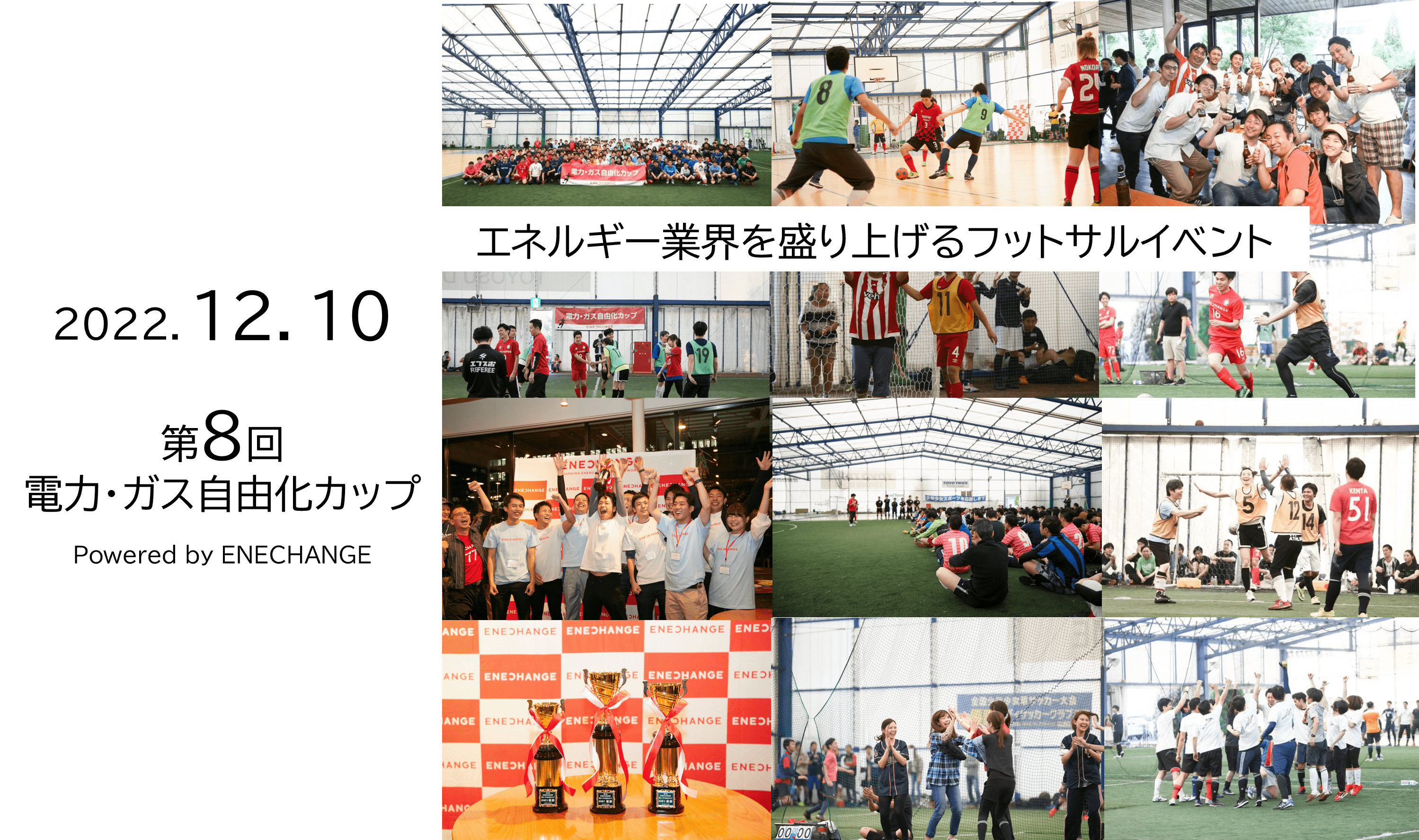 電力小売自由化元年の2016年10月にスタートしたエネルギー業界従事者で開催する「電力・ガス自由化カップ」は、事業者を越えた横の繋がりを強化し、エネルギー業界全体を盛り上げることを目的とし誕生しました。回を重ねるごとに盛り上がりをみせ、2019年11月に開催した第7回大会では、電力・ガス小売事業者にエネルギー関連事業者、監督省庁を含めた過去最大となる21社200名超が参加し、フットサルを通じた交流が行われました。新型コロナウイルスの流行により、2020年以降イベント開催を中止してきましたが、いま、エネルギー業界が大変な局面だからこそ業界内での一致団結が必要ではないかと考え、12月に開催する運びとなりました。