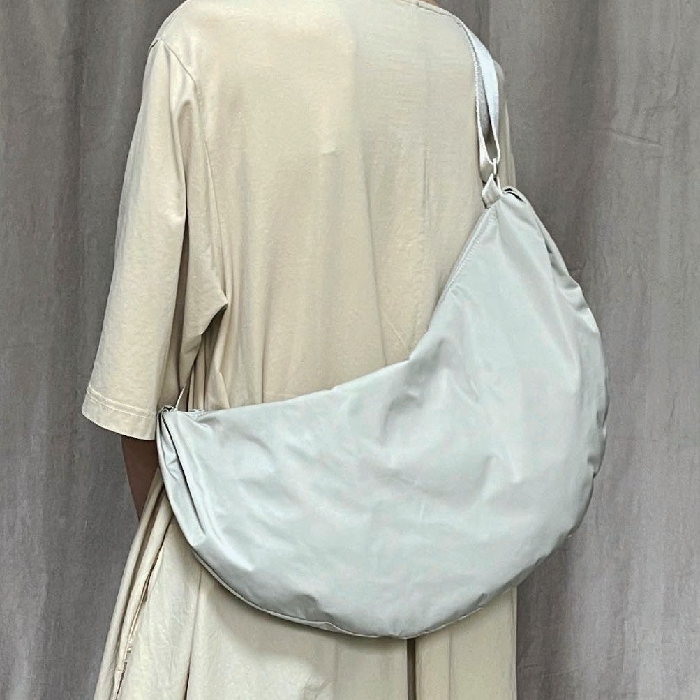 丸みのあるシンプルなデザインで、きれいなシルエットが魅力のバッグ。日本製の多機能な高級素材を使い、使い心地にもこだわりがあります。