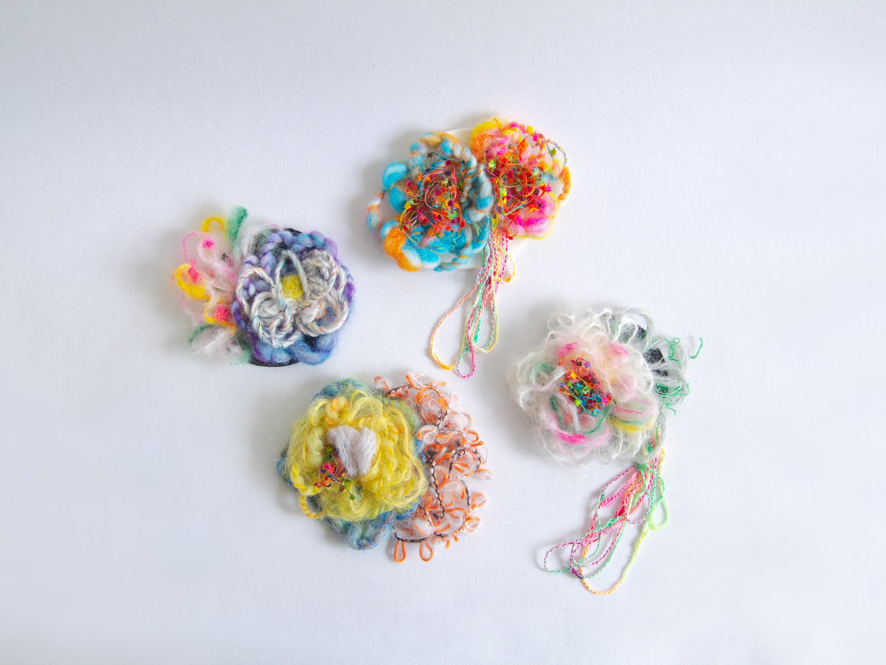好きな毛糸を選び、針で刺して、世界に一つだけのブローチを作ります。