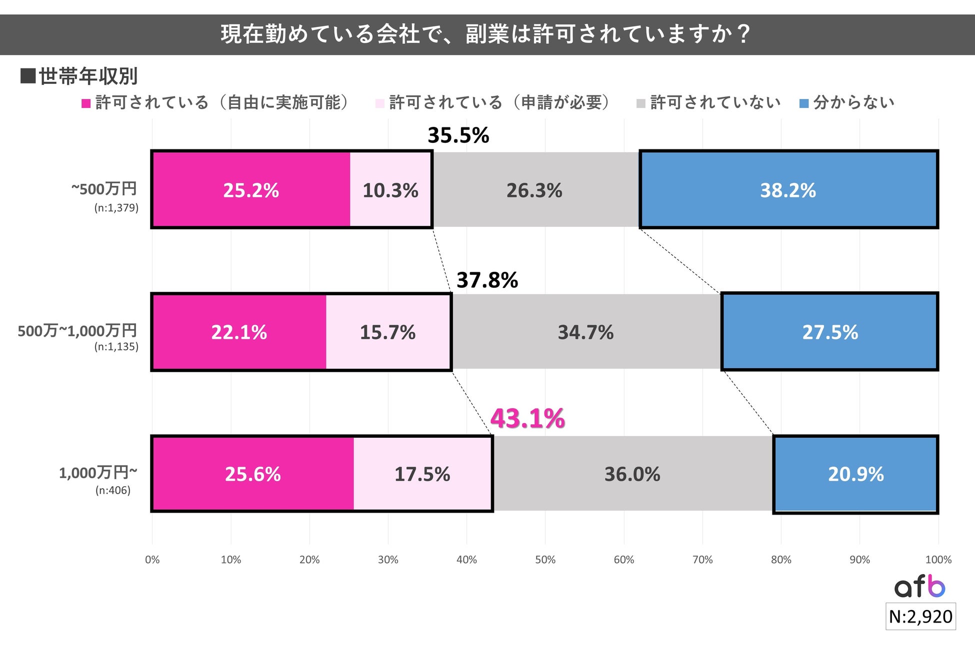 ”副業OK”が条件か?「世帯年収1,000万円以上」では43.1%が「副業が許可されている」と回答!