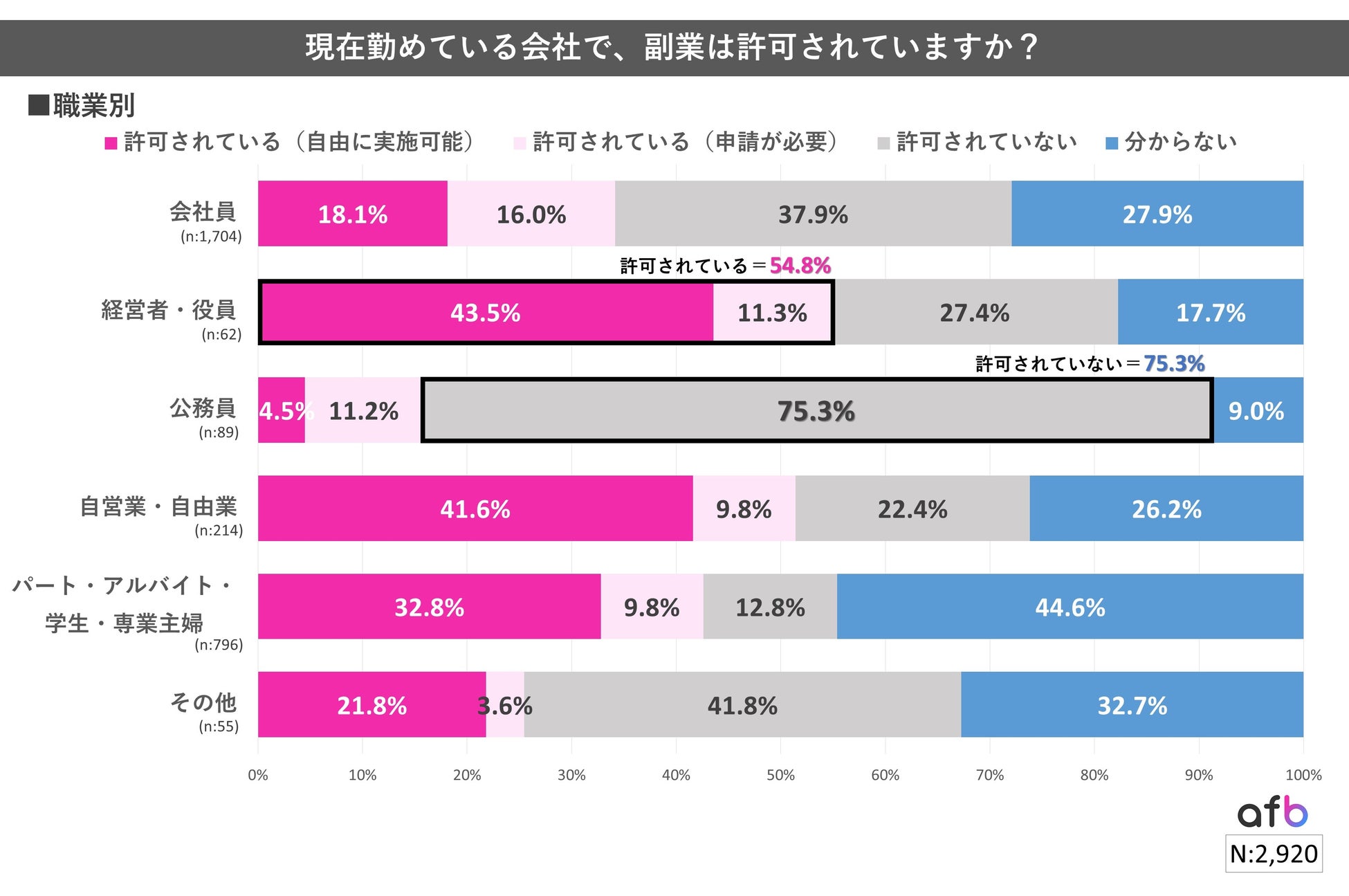 一方、「公務員」は「許可されていない」と回答した方が多く、75.3%となりました。