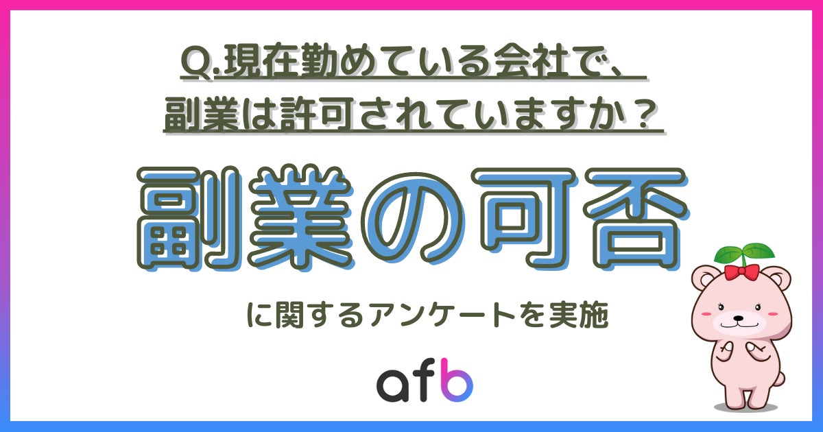 パフォーマンステクノロジーネットワーク「afb(アフィビー)」< https://www.afi-b.com/ >の開発運用をおこなう株式会社フォーイットは、全国の10代~60代までの男女5,000人を対象に副業に関するアンケートを実施し、年代別・世帯年収別等の特徴についてまとめました。