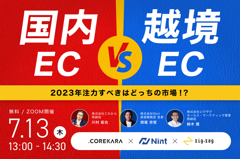 《EC事業者向け無料ウェビナー》2023年7月13日開催、国内ECvs越境EC!2023年 注力すべきはどっちの市場!?