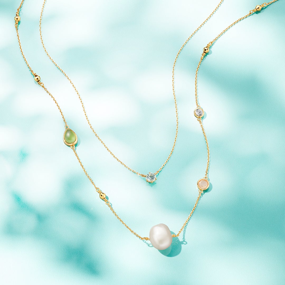首元のあいたシンプルな装いにも唯一無二の魅力をプラスオンする、カジュアルながら洗練されたデザインのネックレスをご用意。8月の誕生石であるペリドットをはじめ、夏の日差しを受けて自由にきらめく鮮やかなストーンを連ねたセットネックレスが、身に着ける人をフレッシュな印象へと導きます。穏やかな太陽の光をイエローゴールドの地金で表現したネックレスは、チャーム部分をリバーシブルにしても身に着けていただけます。