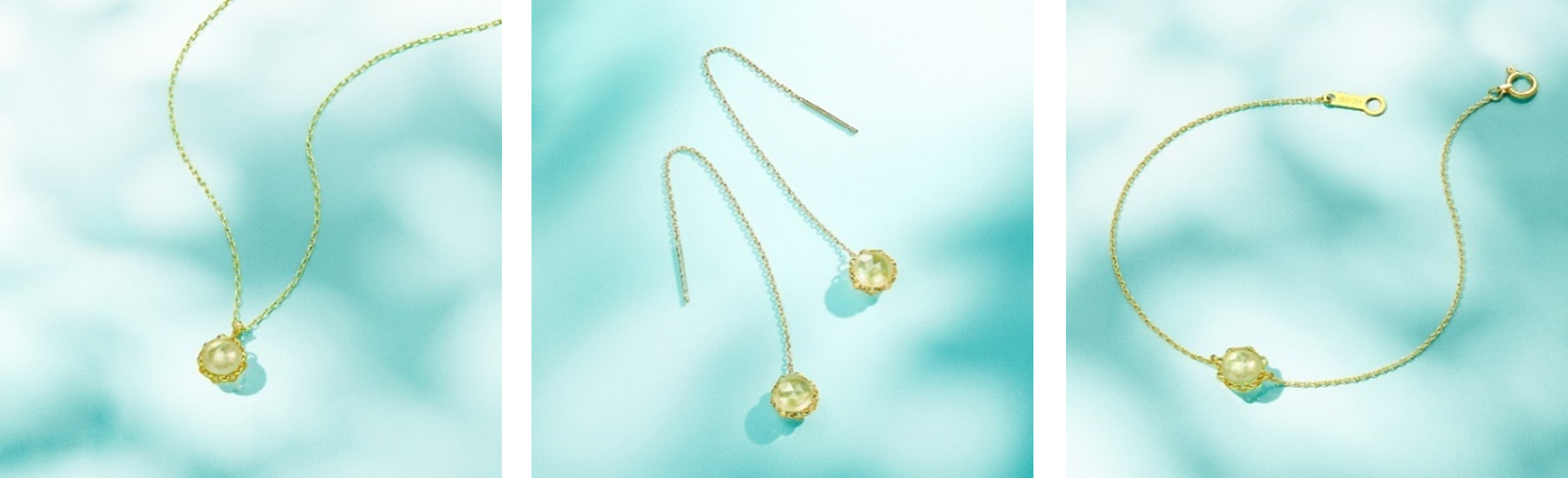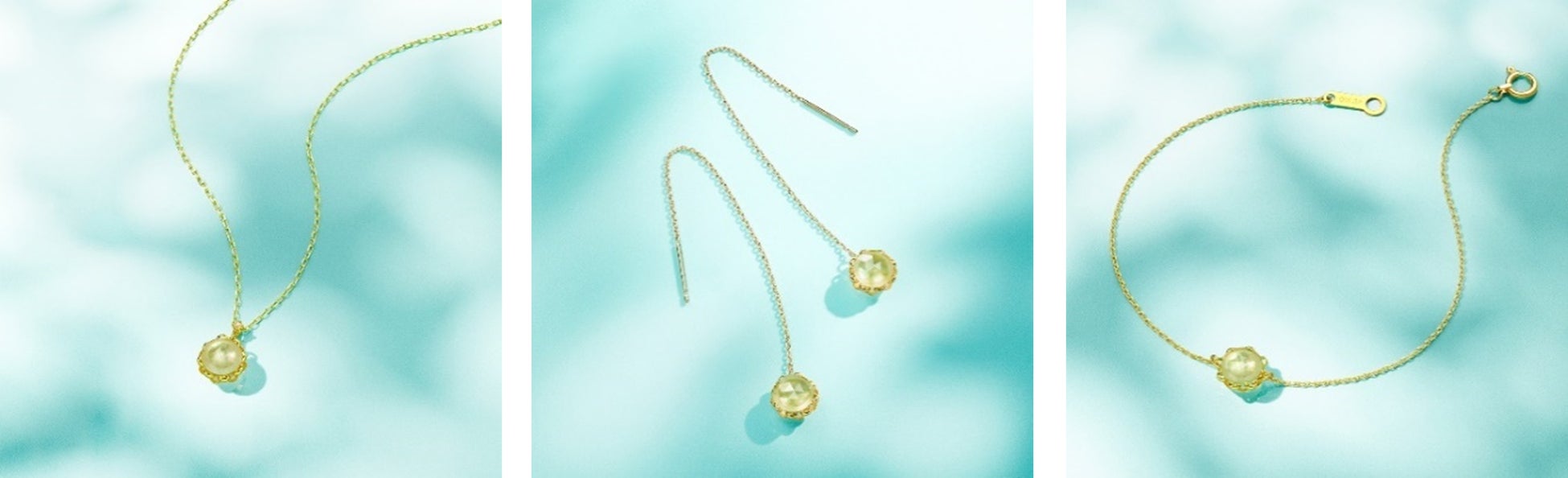 ペリドットやクォーツ、トパーズ、バロックパールなど、穏やかな印象のストーンがやさしく微笑むピアスやブレスレットは、心を癒す豊かな自然を感じさせる、爽やかなデザインに仕上げました。緩やかな曲線を描くイエローゴールドとカラーストーンのコンビネーションを、夏のルックに取り入れて。