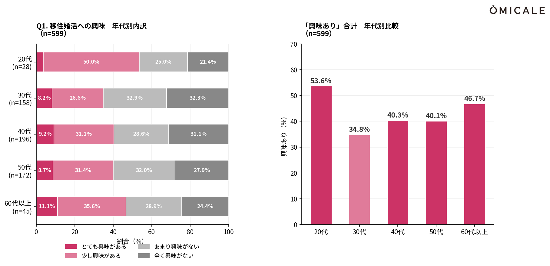 ▼ 20代の「移住婚活に興味あり」が53.6%と全年代で最高