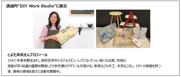 DCMアンバサダーとして、公式YouTube「DCM&とよた真帆のDIYチャンネル!」でも様々なDIYにチャレンジされている俳優“とよた真帆さん”が、過去に作成されたDIY作品を展示するほか、本店舗の為に制作された大型DIY作品を展示いたします。とよたさんは、ご自宅をDIYでリフォームされたり、家具をDIYでリメイクされるなど、生活に幅広くDIYを取り入れられています。