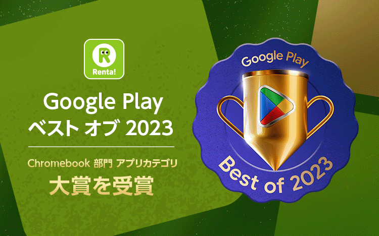 「Google Play ベスト オブ 2023」は、 Google Play が今年話題となった人気のアプリやゲームを部門ごとに発表する年間最大規模のアワードです。この度、Google Play にて質の高いコンテンツのアップデートを通じてユーザーをサポートし、魅了し続けてきたと評価をいただいた漫画アプリ『Renta!』が、「Chromebook部門 アプリカテゴリ」にて大賞を受賞いたしました。これもひとえに、ユーザーの皆様、お取引企業様の多大なるお力添えあってのことと、心より感謝申し上げます。
