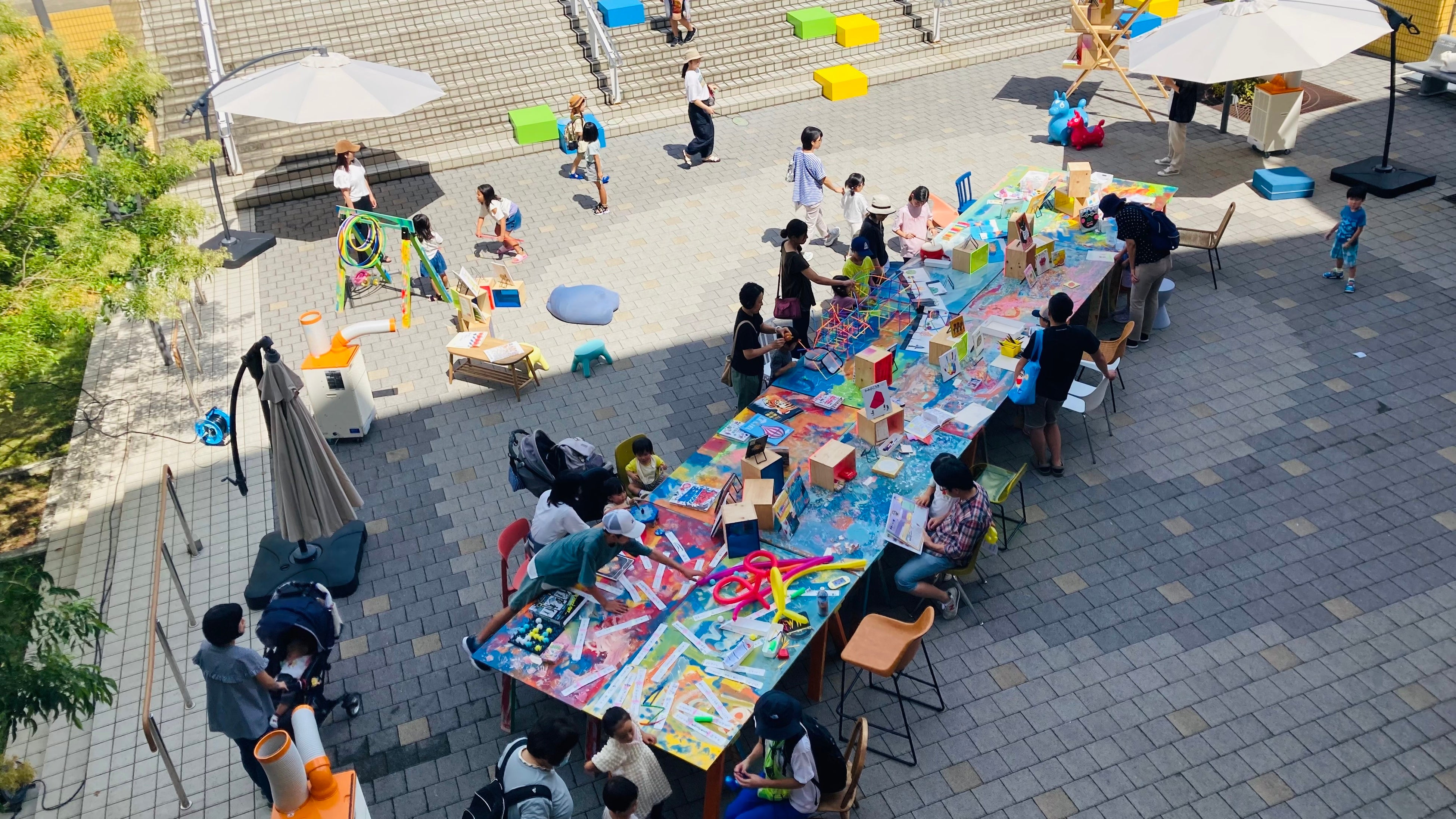 「駅前リビング」は、持続可能で日常的なにぎわいの創出を目的とした社会実験として、静岡県東部を起点とするマチづくり会社、株式会社シード(代表取締役社長:西島 英弘)とともに、「みんなの居場所づくり」をテーマに、「本のある風景」を中心とした空間づくりや遊び・ワークショップなどの企画・運営を行いました。