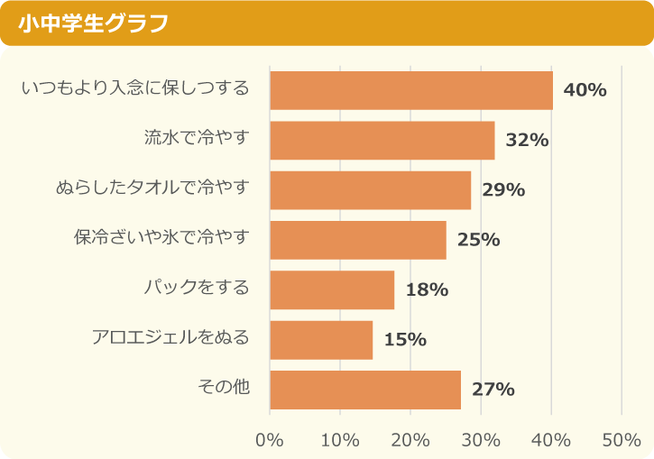 日焼け後のアフターケアで最も多かったのは「いつもより入念に保湿する」で40%でした。