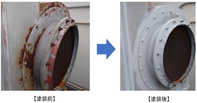NTT-ATCRは海岸の近くに位置し、設備の多くが屋外にあるため、自社屋外設備に対し、防錆塗料等により「錆の発生」への対策を行ってきました。この経験を踏まえて、NTT-ATCRではこれまで各種防錆塗料を設備保全商品として販売してきました。
