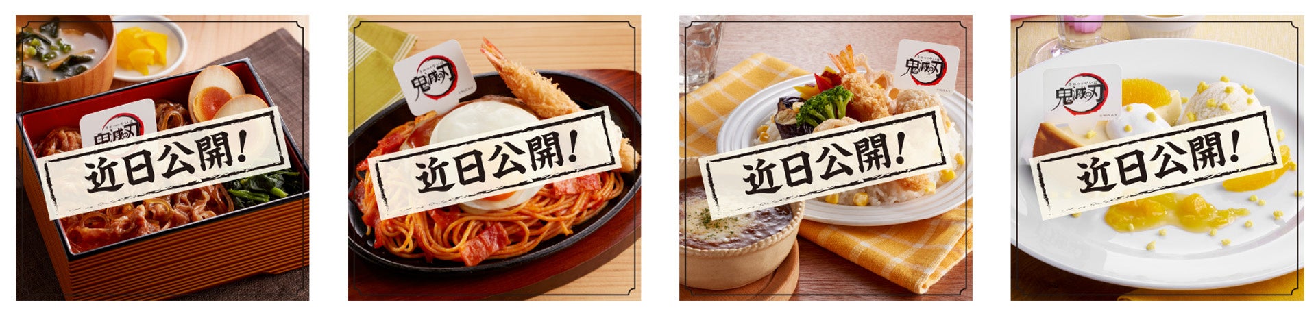期間限定第1弾メニューとして、「竈門禰󠄀豆子(かまどねずこ)」のピンクの着物をイメージしたおしゃれカフェメニュー、豚の角煮と天ぷらのコンボが食欲を刺激する「嘴平伊之助(はしびらいのすけ)」のメニューなど、4品が登場します。