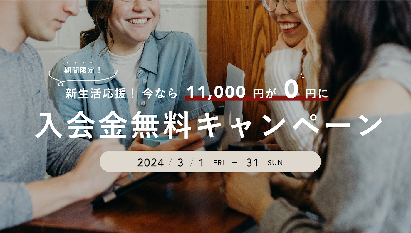 内容:上記「期間中に」会員申し込みで通常11,000円の入会金が無料