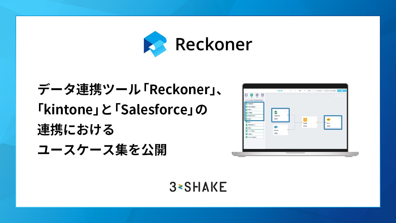 株式会社スリーシェイク(本社:東京都新宿区、代表取締役社長:吉田 拓真、以下スリーシェイク)が提供する、クラウド型データ連携ツール「Reckoner(レコナー)」は、kintoneおよびSalesforceとラクにシステム連携を行うためのユースケース集を公開しました。本ユースケース集では、両ツールのユーザーが抱えるデータ連携に関する課題を、Reckonerを活用してどのように解決できるかを説明し、データ連携や業務効率化を図るための実践的な活用事例を紹介しています。