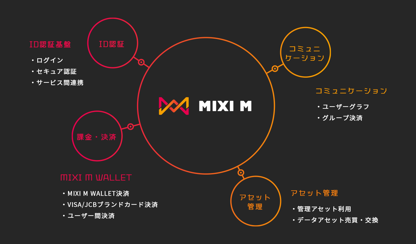 「MIXI M」は、これまでの決済機能に加えて、ID認証やアセット管理などを拡充することで、様々なサービス間での連携や個人データのサービスを跨いだ利用など、決済以外の領域でのベネフィット創出を目指していきます。