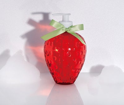 置いて楽しいいちごのフォルムとおいしそうな摘みたていちごの香りが、思わずお風呂に入りたくなるボディーソープ。