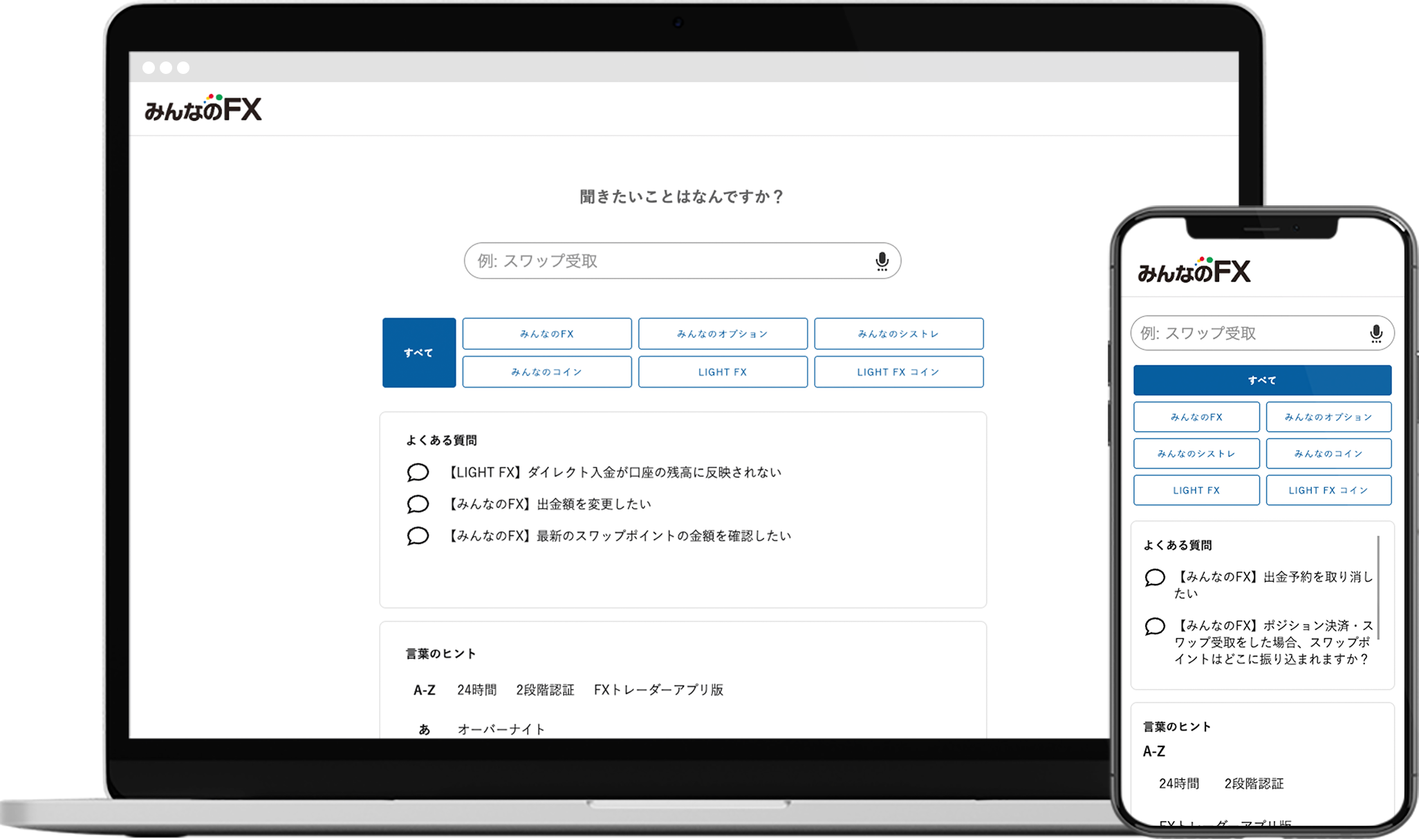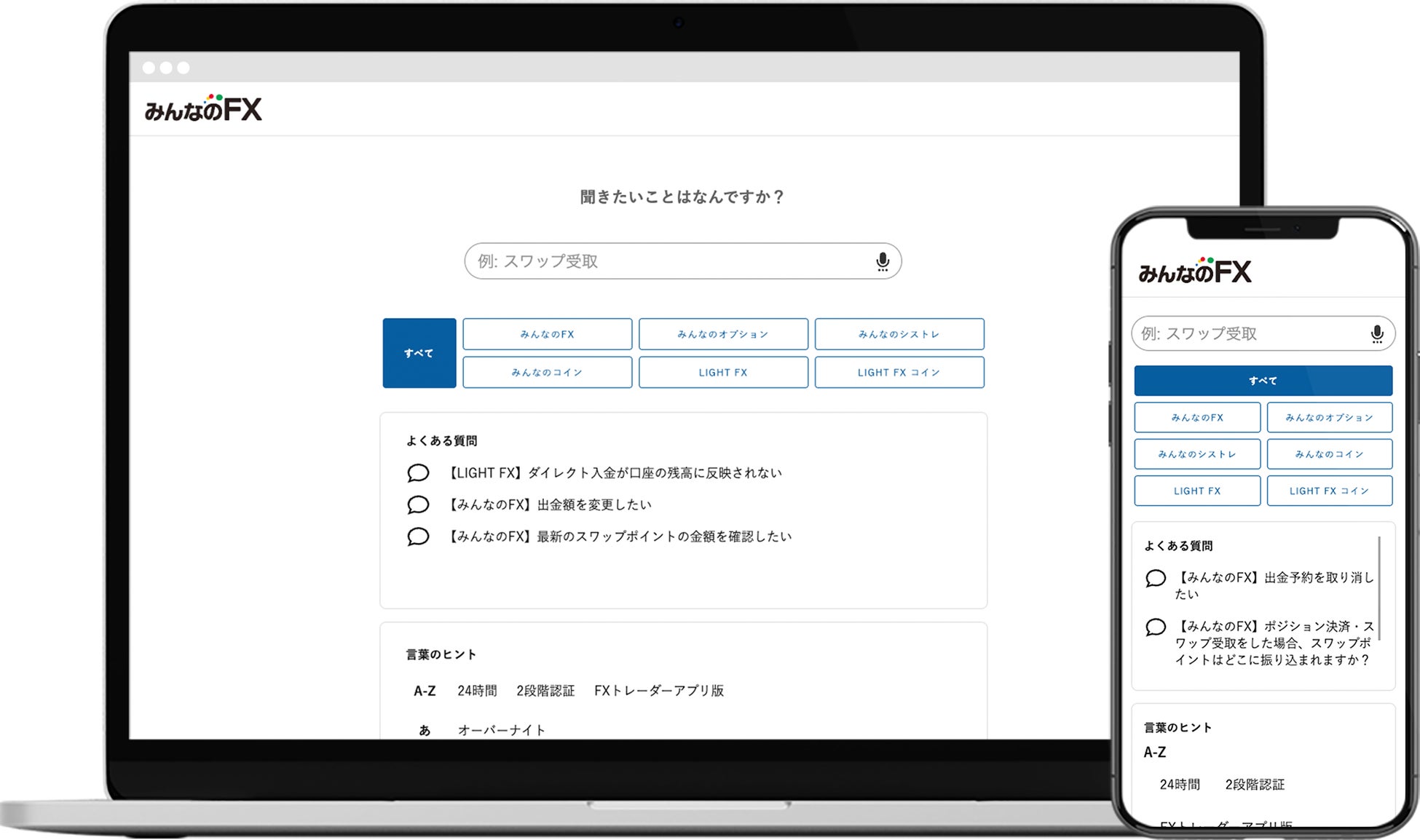 「みんなのFX」「みんなのシストレ」「LIGHT FX」など、同社が運営する6サービスのFAQとして活用