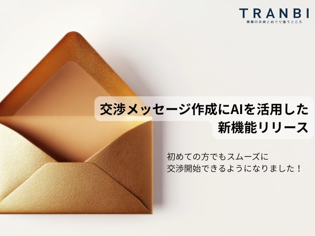 TRANBI、M&A交渉支援をAIで自動化 初回メッセージ作成をサポートする新機能をリリース