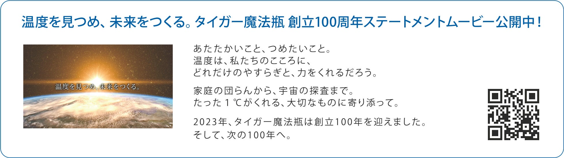 タイガー魔法瓶の真空断熱ボトルによって、お客様の日々の暮らしがさらに豊かになるように、私たちは、100年の歴史で培った独自技術を101年目以降も磨き続け、高品質な製品を世の中に提供してまいります。