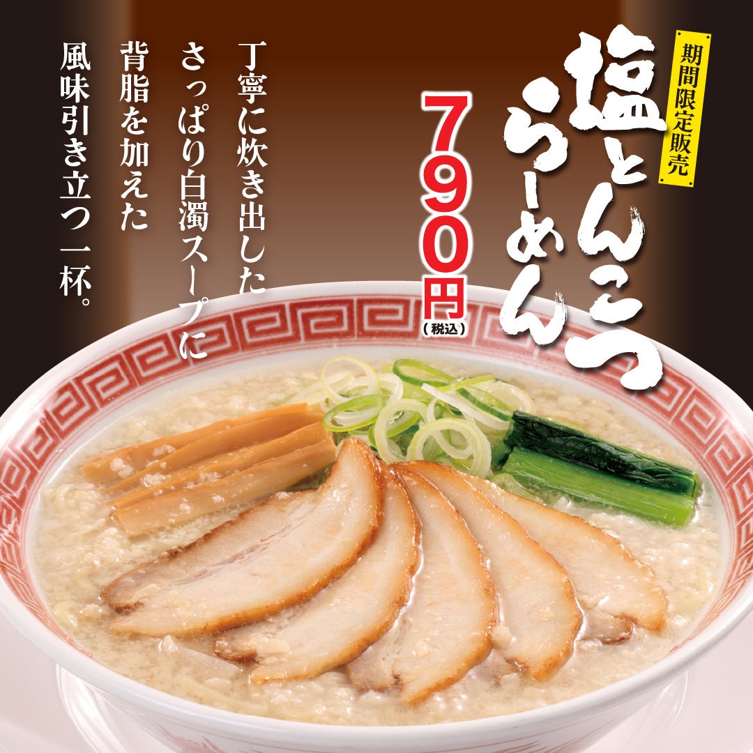 株式会社幸楽苑(本社:福島県郡山市)が運営する「幸楽苑」は、2025年4月1日(火)から、豚足などを丁寧に炊き出したさっぱり白濁スープに、背脂を加えることで甘みや風味を引き立たせた「塩とんこつらーめん」 790円(税込)を 期間限定で販売いたします。本商品には、70円~150円お得にお楽しみいただけるセットメニューもご用意しております。