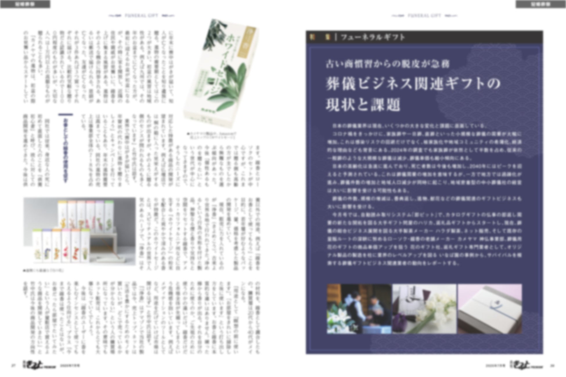 さらに、お中元や葬儀ビジネス、インクルーシブフードに関する特集なども掲載。業界注目の情報が満載です。ぜひ、ご一読ください。