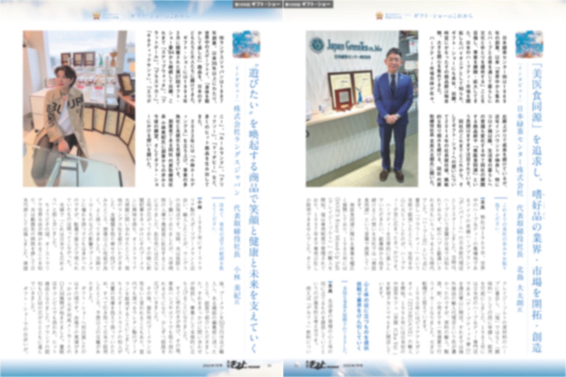 さらに、関連企画として、ギフト市場の重要プレイヤーであるシャディの矢野社長と愛知県陶磁器工業協同組合(愛陶工) の中野理事長へのインタビューも掲載。それぞれの視点から、ギフト・ショーの意義と今後の展望を浮き彫りにしています。