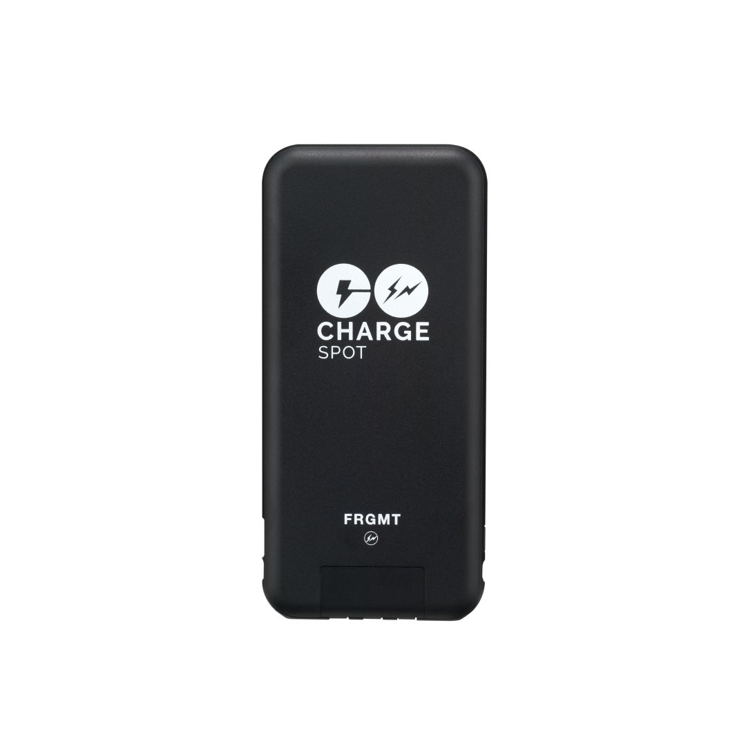 前回大好評を博したこのコラボレーションは、前回の2019年から実に4年ぶりの登場となります。今回のfragment design × ChargeSPOT コラボレーションモバイルバッテリーのデザインは、「ChargeSPOT」の通常のモバイルバッテリーとは大きく異なり、全面が黒をベース、表面にfragment designの象徴的なボルトマークと「ChargeSPOT」のCマークが隣り合って白でプリントされた特徴的なデザインで、バッテリースタンドのスロットに刺さった状態でもひと目で特別なモデルであることが分かります。